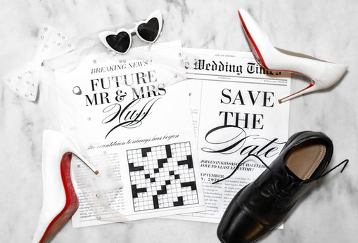 Personalized newspaper save the dates featuring Austin and Haley’s story